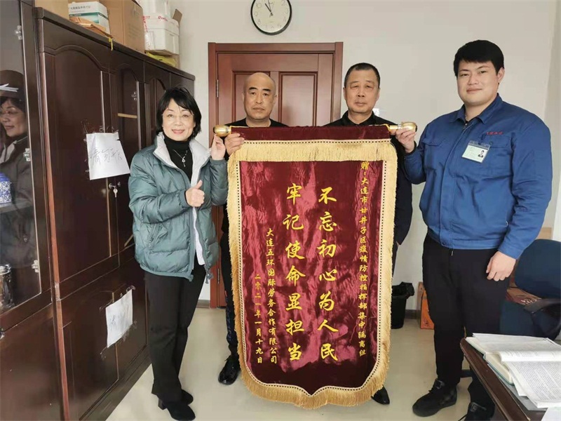 實習生袁俊秀為公司贈送錦旗 “感恩于五環,家一般溫暖”